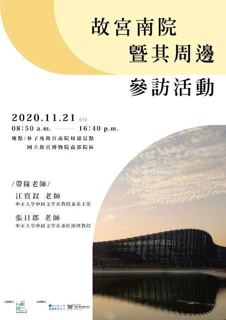 本次活動的主題故宮南院是嘉義縣最具代表性的文化景點之一。館內文物豐富多元,內容多為亞洲藝術品和相關文物。極富教育意義。也設有人工湖和景觀花園。本次活動透過許多文化景點,希望帶給學生的不只是一次出遊的體驗,而是讓學生感受到嘉義在地強烈的文化氣息,以增加學生之人文素養。